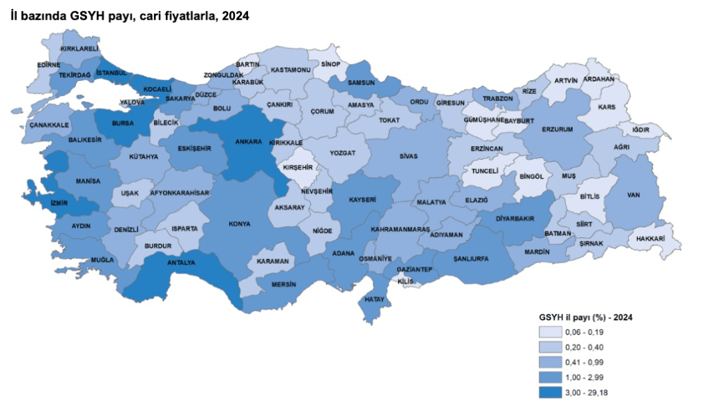 TUIK geçtiğimiz hafta içerisinde 2024 milli gelir rakamlarının bölgesel kırılımlarını kamuoyu ile paylaştı. Veriler bize yıllar içerisinde il seviyesinde ekonominin nasıl bir seyir izlediğini gösteriyor…