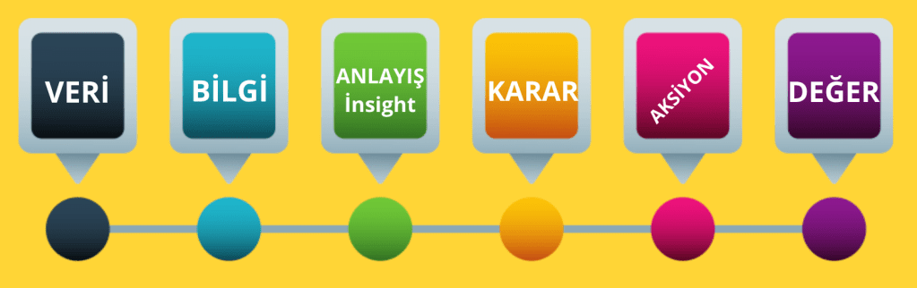 Temel mekanizması yukarıdaki şekilde formüle edilebilecek “Veri Hikayeciliği”, “Analitik Değer Yaratma” yolunun üzerinde “Anlayış” / “İçgörü” basamağının geçilmesi için önerilen yöntemler bütünüdür.